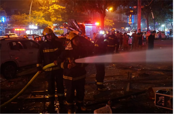 9月12日凌晨3时许,家住太和县汽车南站附近的李师傅,被窗外的异响惊醒,随后传来阵阵呼救声。“旁边的饭店失火了。”他跑到楼下看到,不远处的一家小吃店铺火光四射,浓烟向四处弥漫。“不知道是否有人被困?”